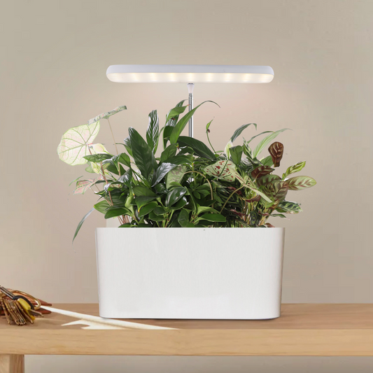 Vår teknik tar hand om växterna när du är upptagen. Självvattningssystemet ser till att dina växter aldrig törstar. Det är som att ha en trädgårdsmästare hemma! LED-belysningen simulerar naturligt solljus, vilket hjälper växterna att frodas även under mörka vinterdagar.